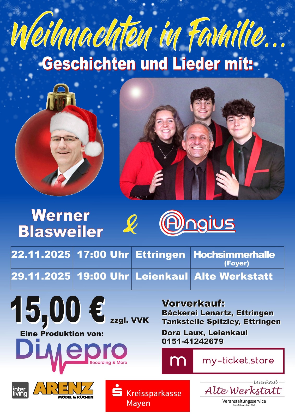 (Vor)weihnachtliche Unterhaltung mit tollen Geschichten und vielen Liedern, präsentiert von Werner Blasweiler und von uns.